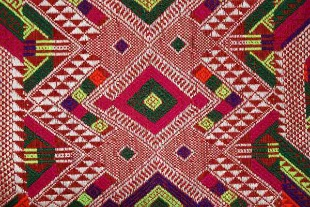 苗锦是苗族人民传统生活用品。苗锦同银饰、刺绣、蜡染一起,被称为苗族四大服饰工艺。基本组织为人字斜纹、菱形斜纹或复合斜纹,多用小型几何纹样。苗族服装用以镶嵌衣领、衣袖或作其他装饰。苗锦以纬丝起花,采用多把小梭子织造。开口用多片综(或提经竿),可以兼用“通经断纬”挖梭织法,纹样色彩优美,富有民族风格。