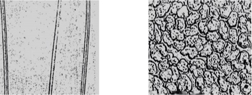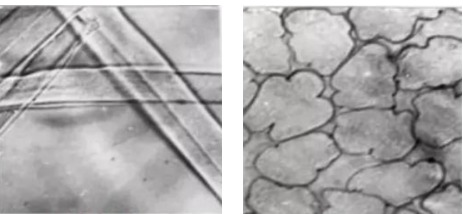 图2-12(1)羊毛纤维纵向形态 图2-12(2)羊毛纤维横向形态