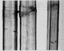 图2-25(1)腈纶纤维纵向形态 图2-25(2)腈纶纤维横向形态