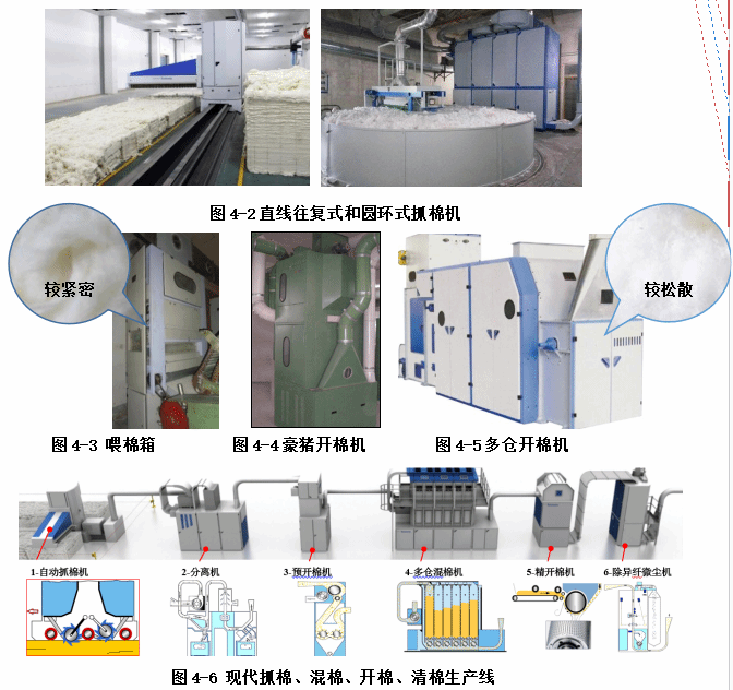 棉包混棉(抓棉机)→初步开松(喂棉箱)→彻底开棉(开棉机)