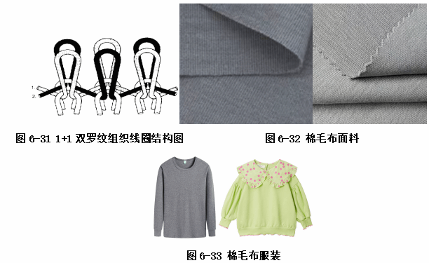 采用同一种单纱或者双纱编织而成,普通棉毛布面料如图6-32所示,其服装如图6-33。