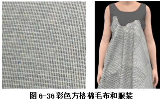 4.彩色方格棉毛布:将以上两者结合起来,则可以形成彩色方格棉毛布和服装,如图6-36。
