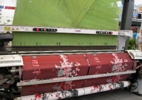 色织提花丝绸可采用剑杆提花织机。一般采用白经彩纬,纬纱显花型的方式,即通过不同颜色的纬丝与白色经丝交织出色彩绚丽的花型。