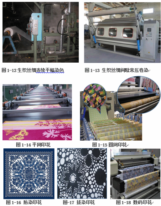 熟织产品先将缫丝后先精炼,后染色、再织造;生织产品先织造,后精炼脱胶,再染色。